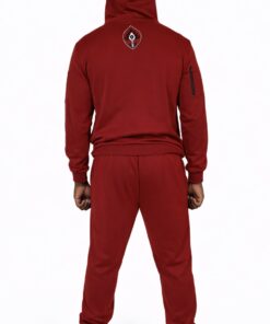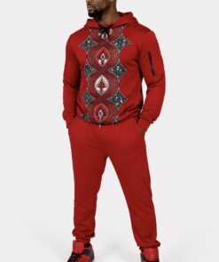 Mens 2 Piece Burgundy Ankara Sweat Track Sport Jogger Suit
