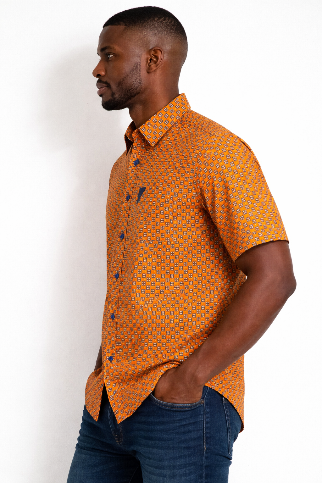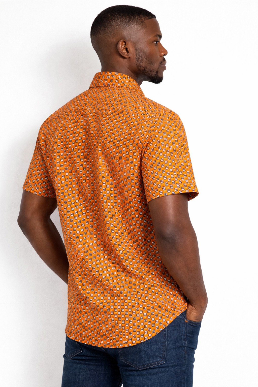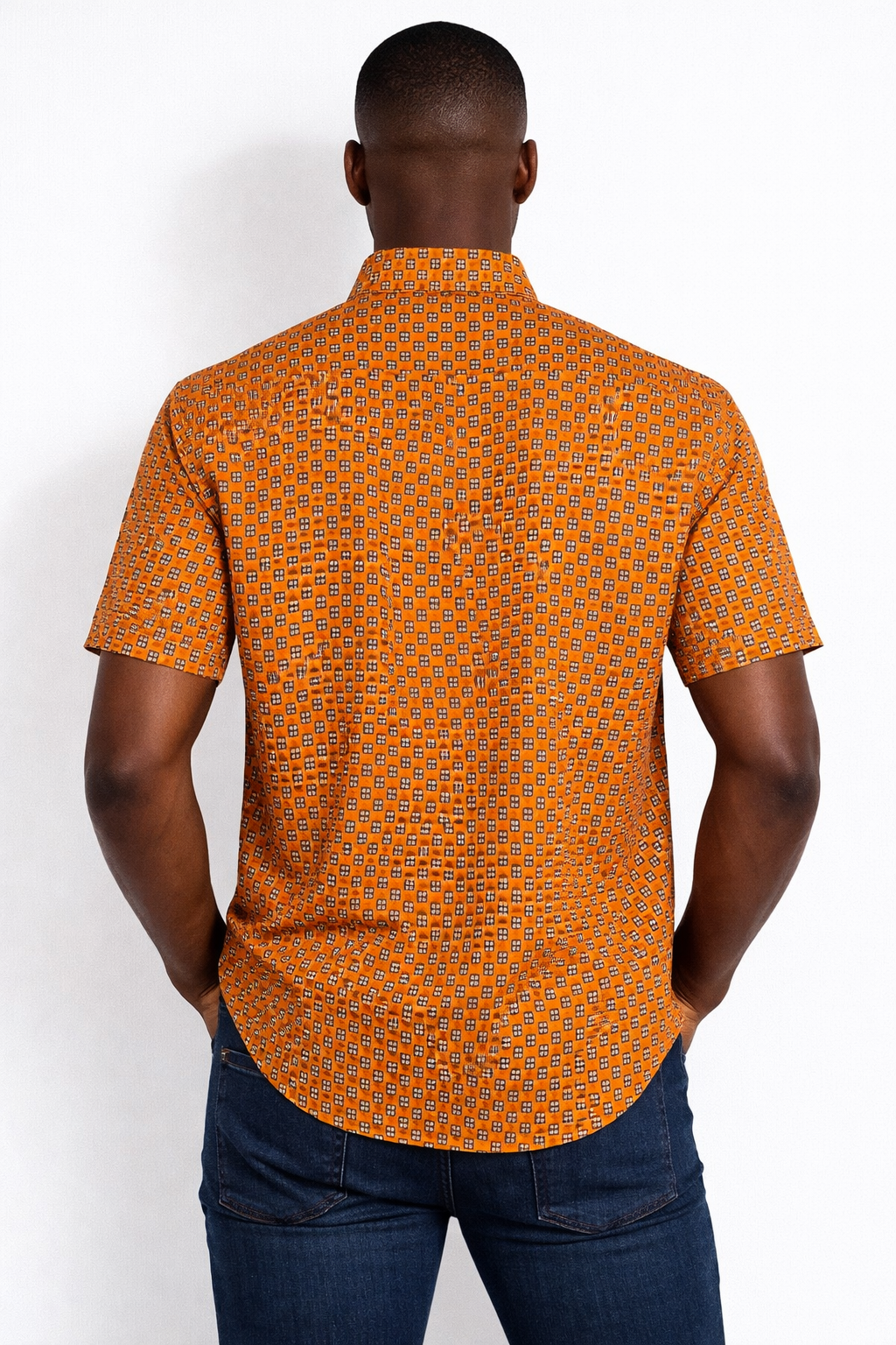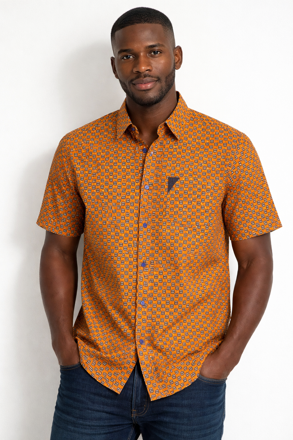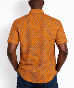 Mens Burnt Orange Sugar African Print Button Shirt