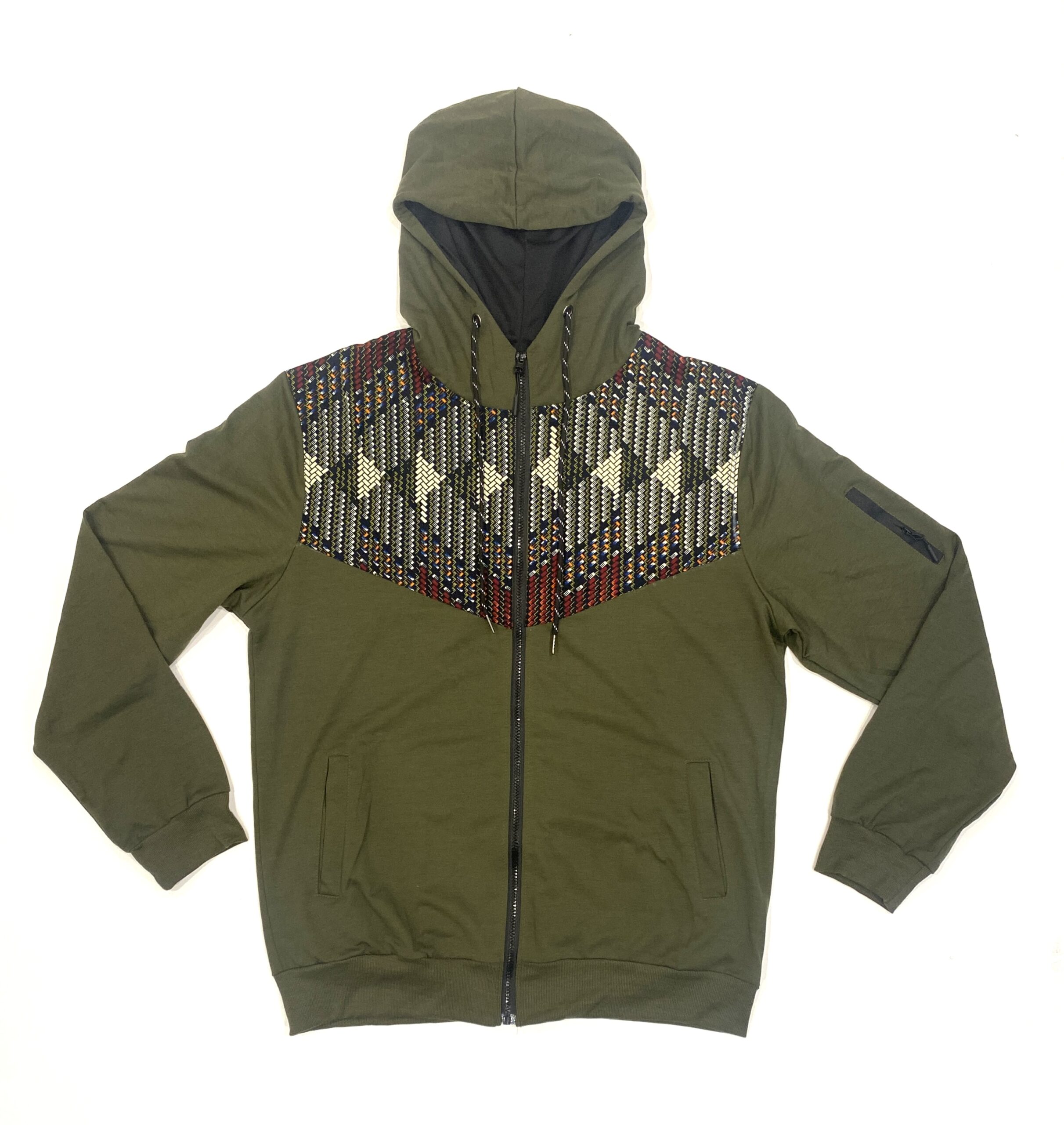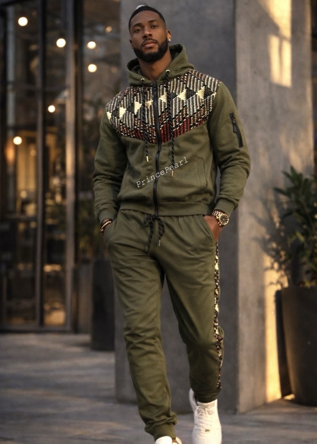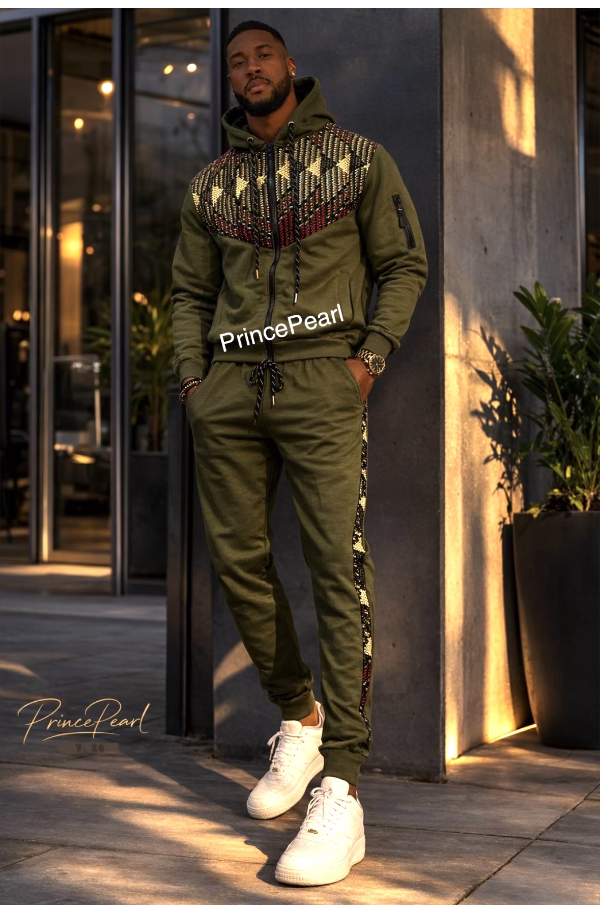 Mens 2 Piece Olive Green Ankara Sweat Track Sport Jogger Suit
