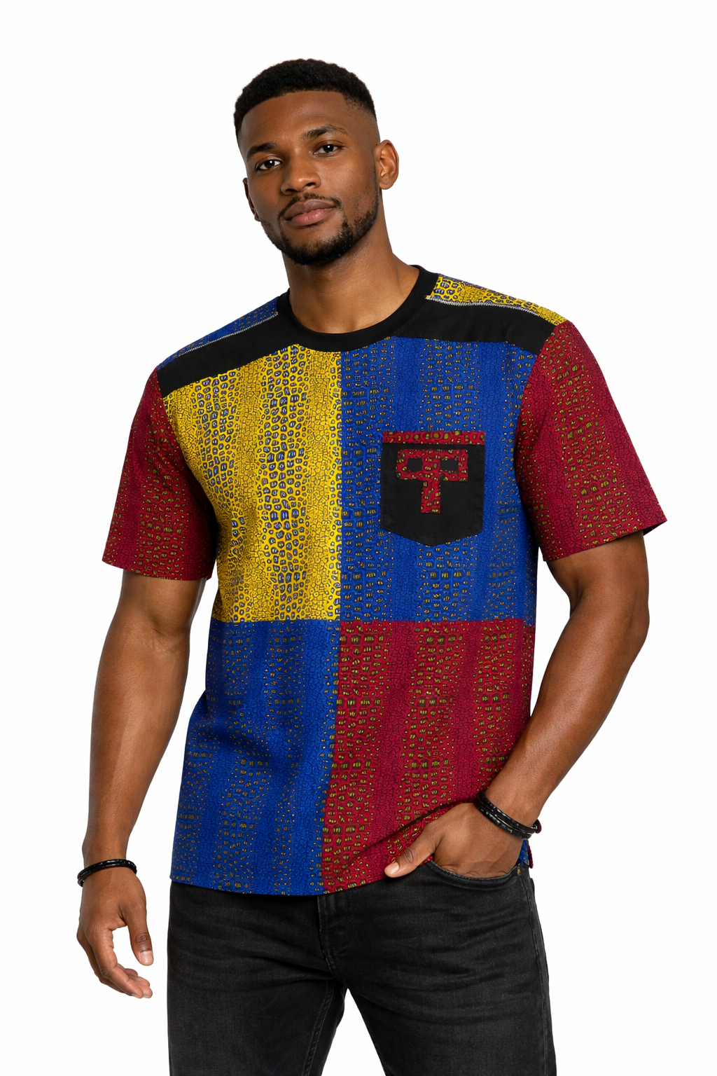 Mens Multi Color Stone Block African Print Shirt